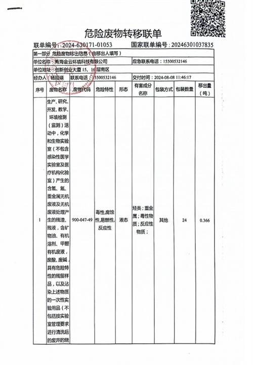 | 上一篇:危險廢物轉移聯(lián)單 | 下一篇:金云科技時刻在行動 |