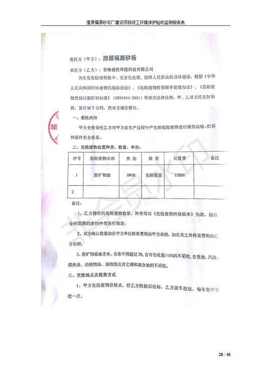 湟源福砂廠建設(shè)項(xiàng)目竣工環(huán)境保護(hù)驗(yàn)收發(fā)布日期:(2018-9-6) 點(diǎn)擊次數(shù):2213 |