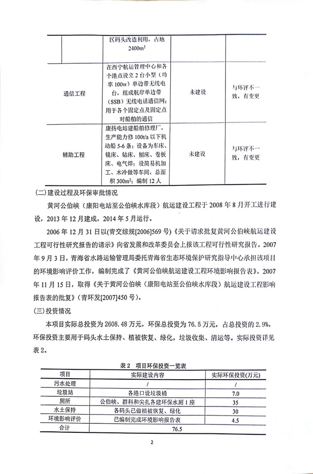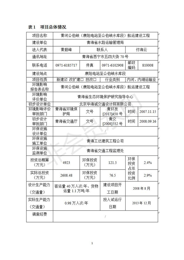 黃河公伯峽(康楊電站至公伯峽水庫段)航運建設(shè)工程竣工環(huán)境保護驗收調(diào)查報告表公示發(fā)布日期:(2018-11-16) 點擊次數(shù):2620 |