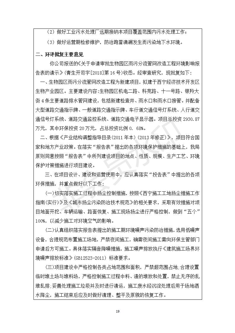 生物園區(qū)雨污分流管網(wǎng)改造工程竣工環(huán)境保護(hù)驗(yàn)收調(diào)查表 公示發(fā)布日期:(2018-12-21) 點(diǎn)擊次數(shù):2938 |