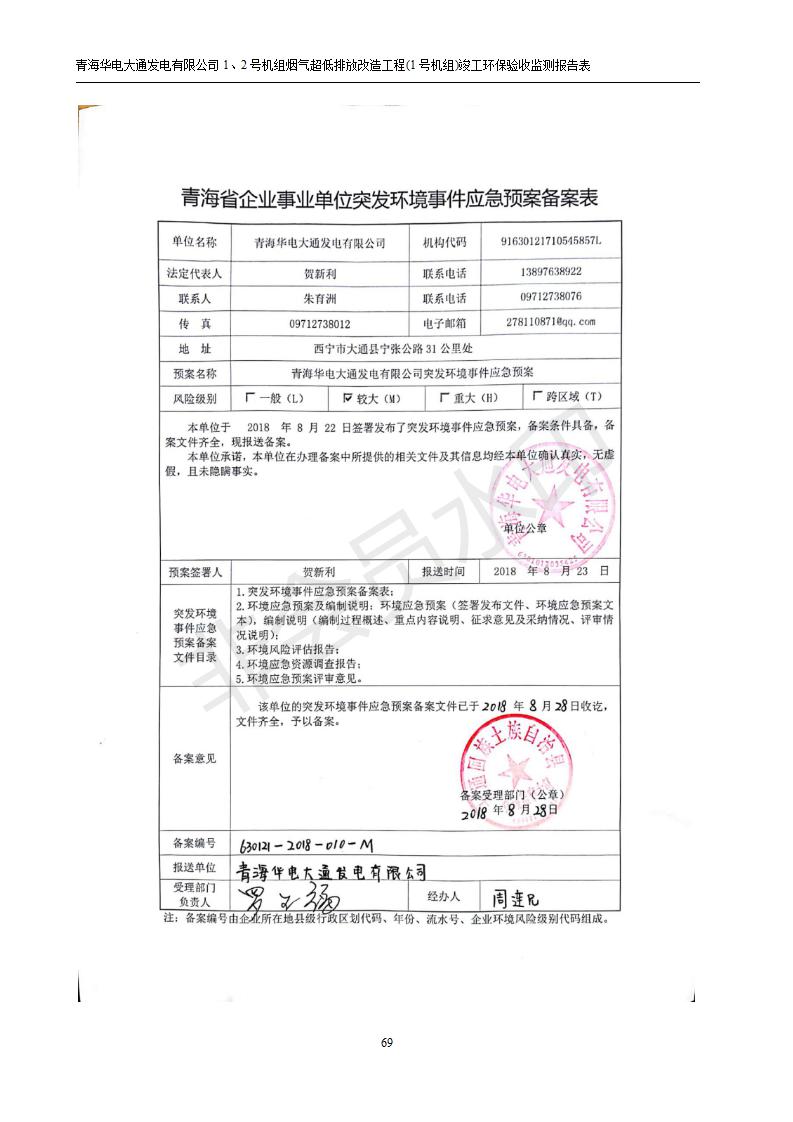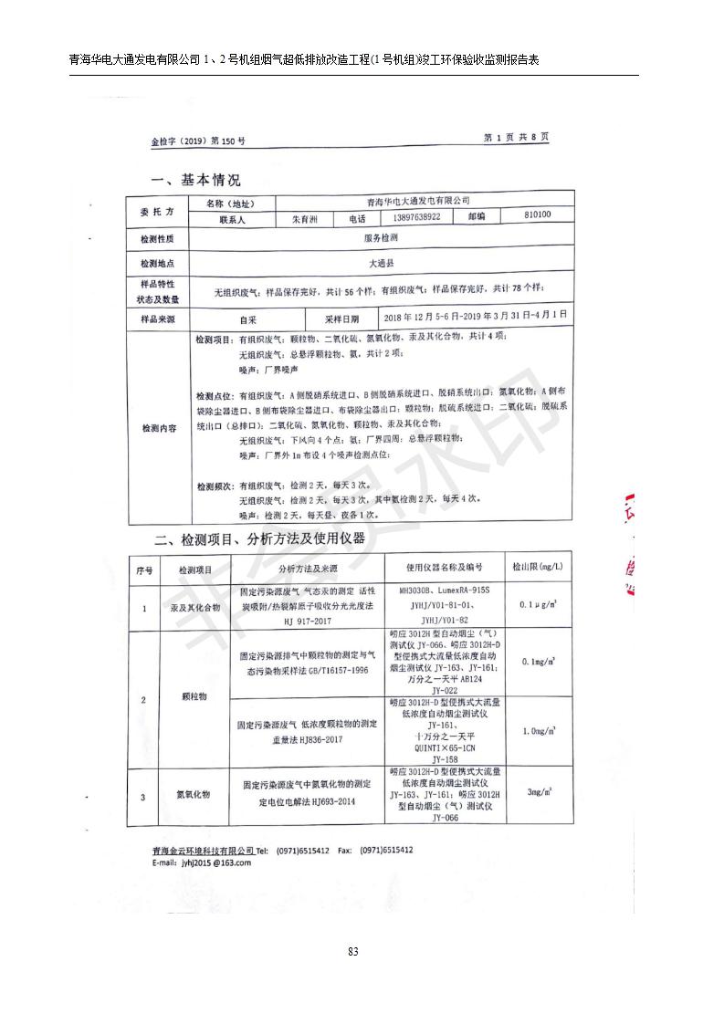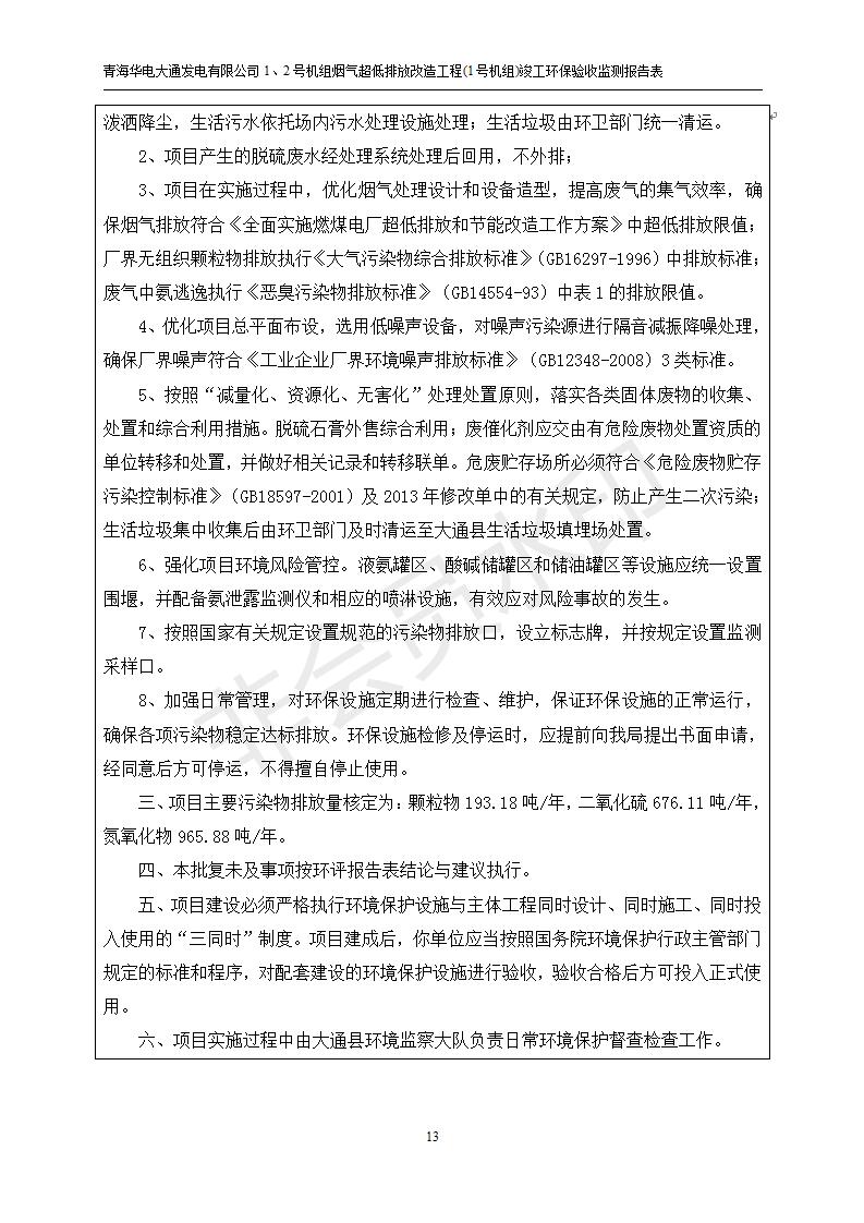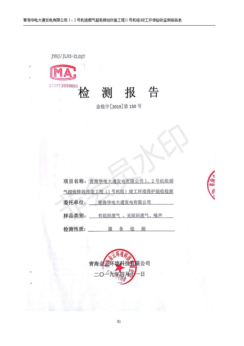 青海華電大通發(fā)電有限公司1、2號機組煙氣超低排放改造工程(1號機組) 竣工環(huán)境保護驗收監(jiān)測報告表公示發(fā)布日期:(2019-2-13) 點擊次數(shù):2750 |