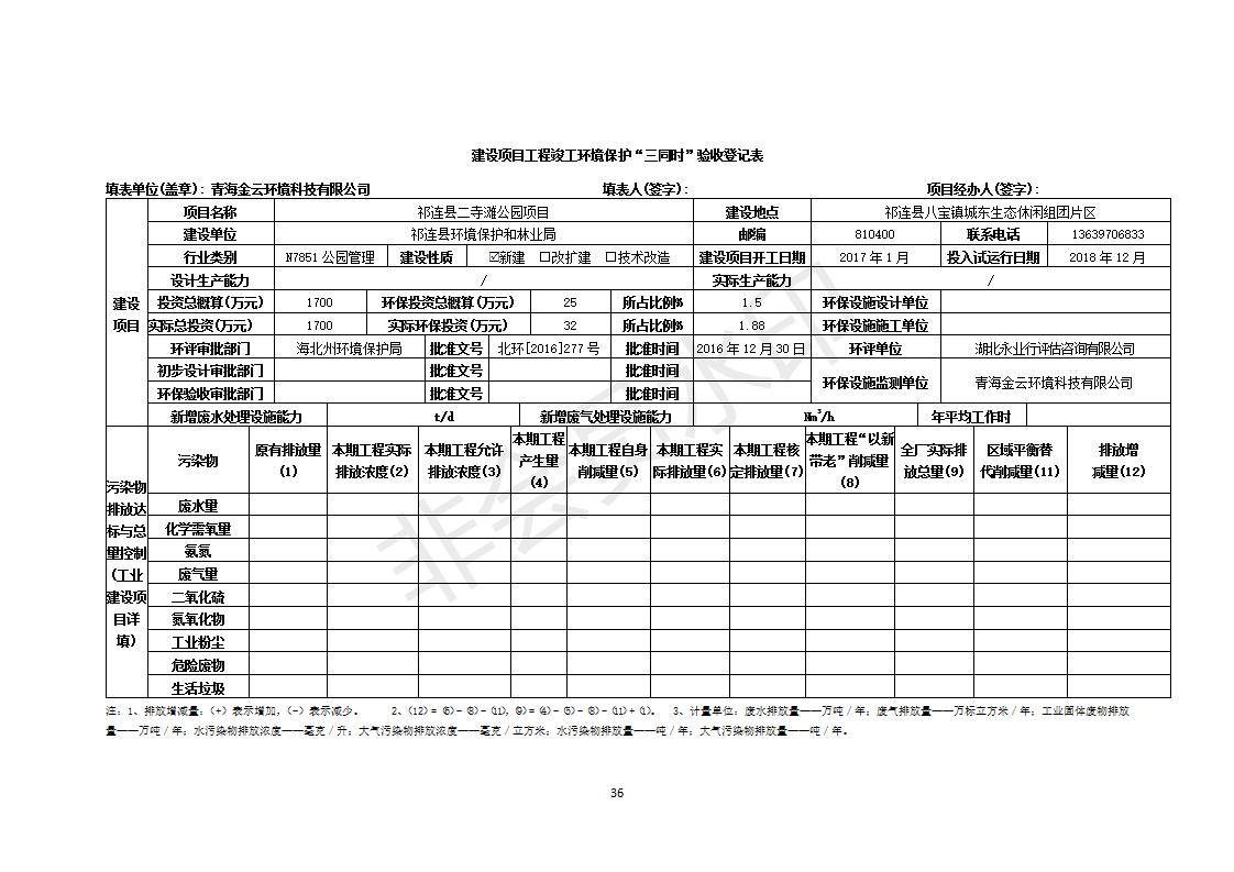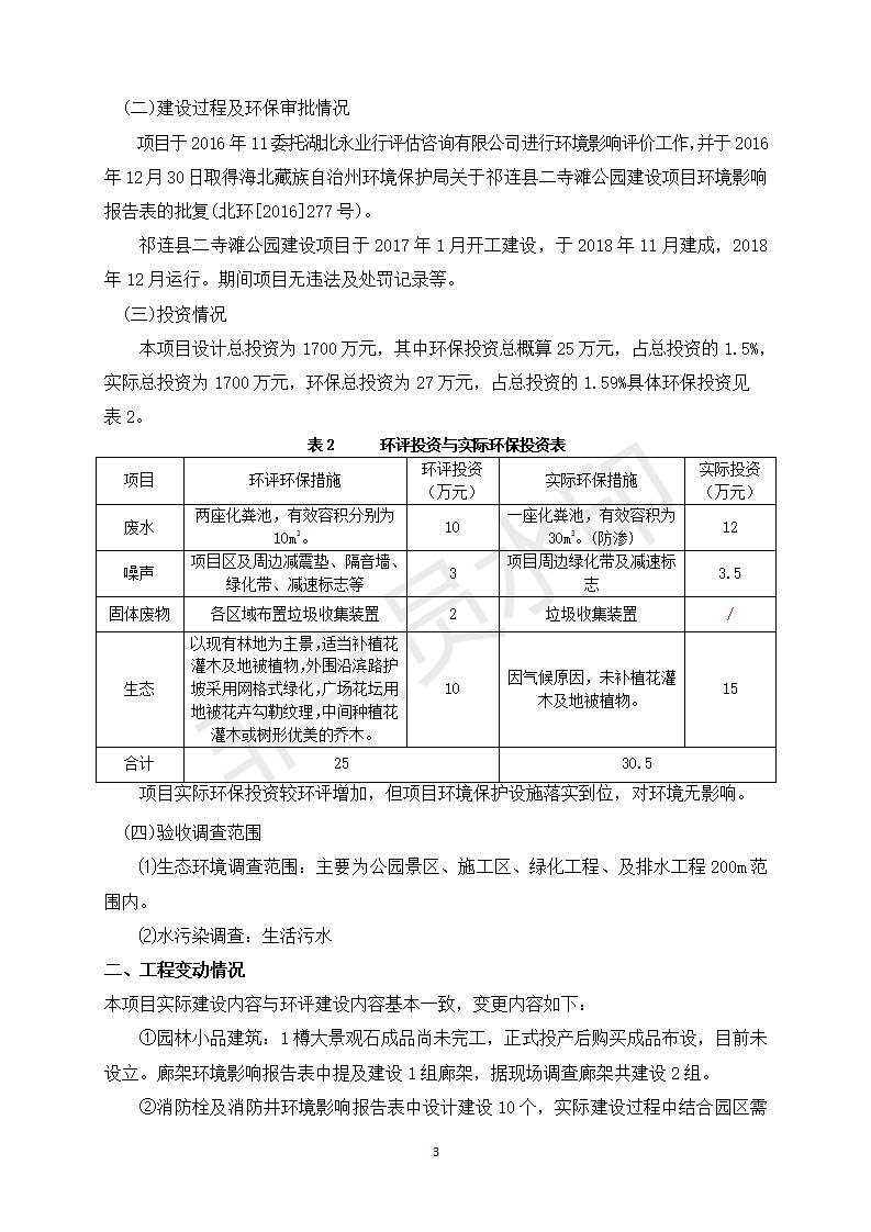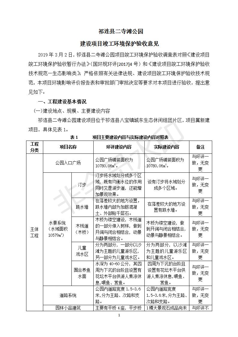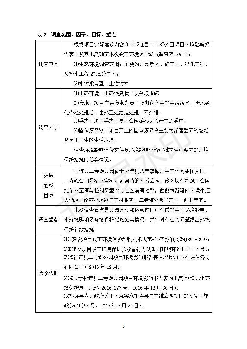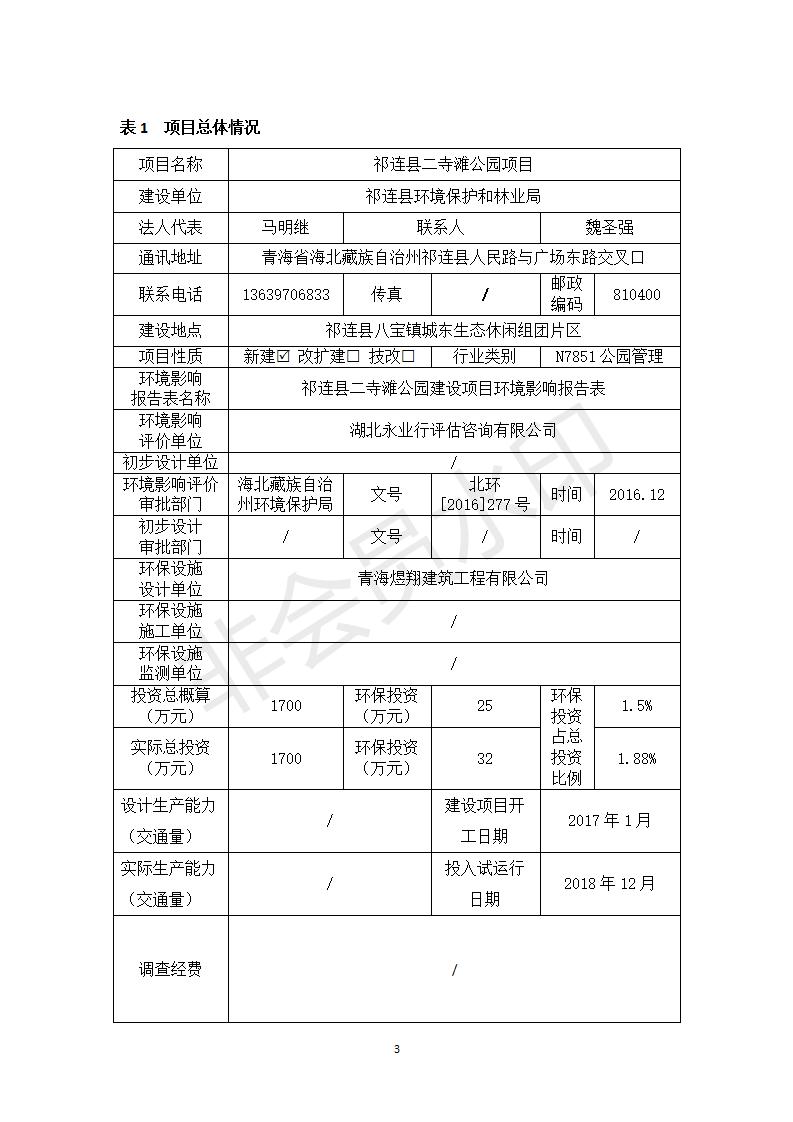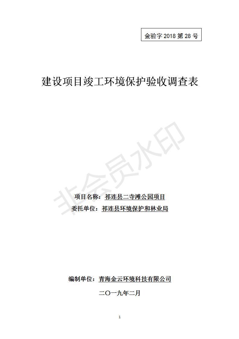 祁連縣二寺灘公園項目竣工環(huán)境保護(hù)驗收調(diào)查表公示