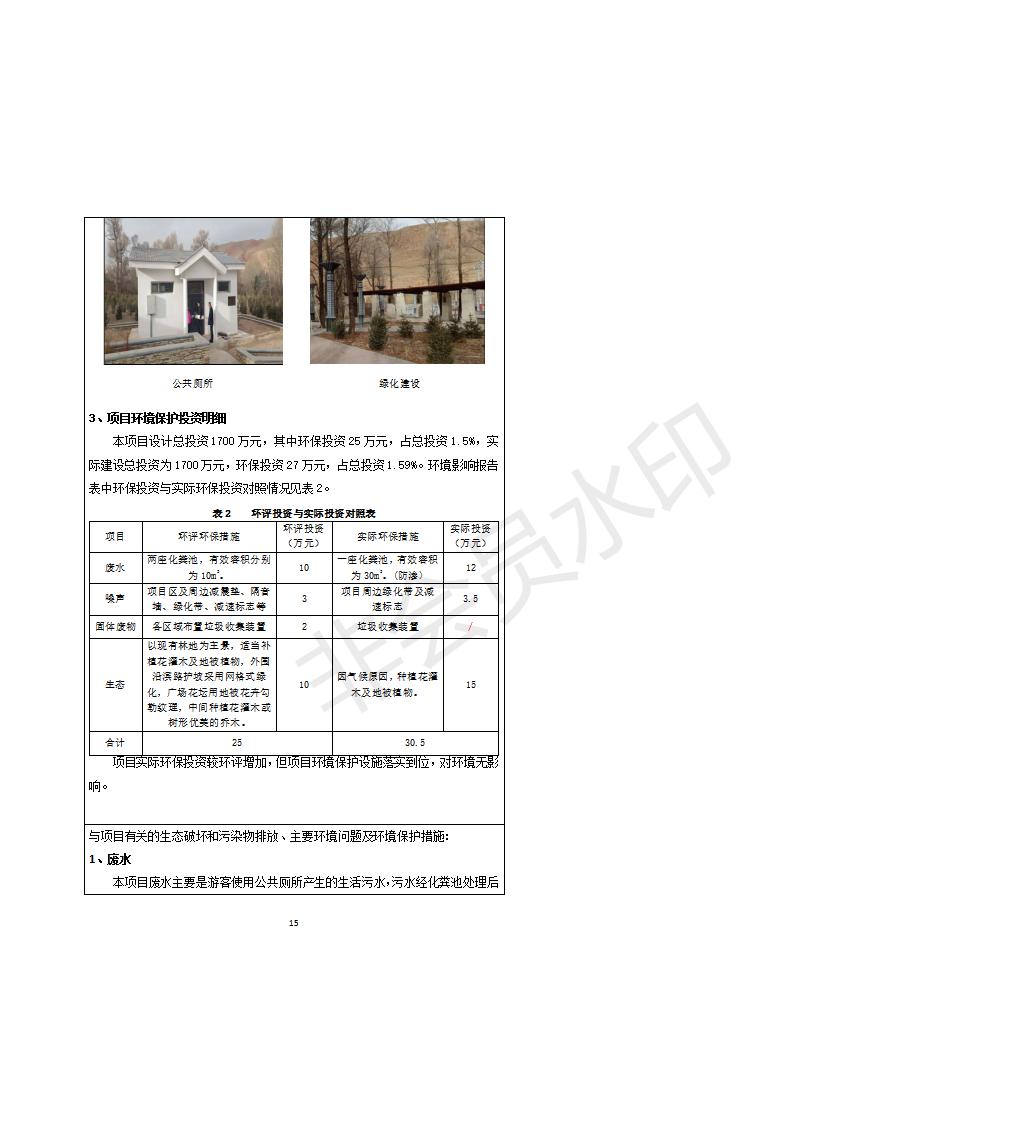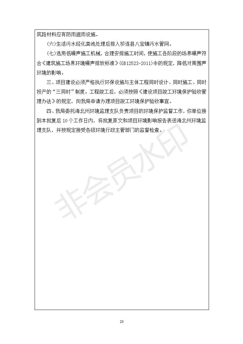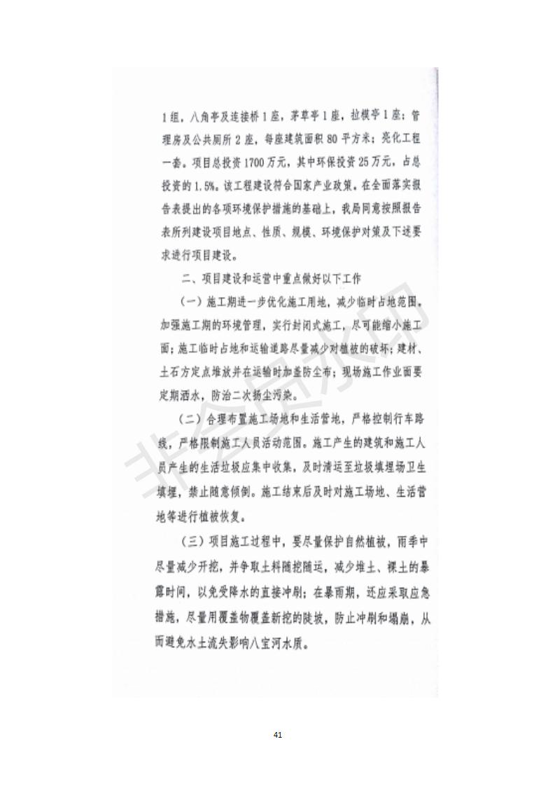 根據(jù)中華人民共和國務(wù)院令第682號《國務(wù)院關(guān)于修改〈建設(shè)項目環(huán)境保護(hù)管理條例〉的決定》和《建設(shè)項目竣工環(huán)境保護(hù)驗收暫行辦法》(國務(wù)院令682號),祁連縣二寺灘公園項目竣工環(huán)境保護(hù)驗收內(nèi)容(包括竣工環(huán)境保護(hù)驗收調(diào)查表和驗收意見)公示如下。 一、項目名稱:祁連縣二寺灘公園項目竣工環(huán)境保護(hù)驗收調(diào)查表 二、地點:祁連縣八寶鎮(zhèn)城東生態(tài)組團(tuán)片區(qū) 三、建設(shè)單位:祁連縣環(huán)境保護(hù)和林業(yè)局 四、建設(shè)內(nèi)容:公園廣場入口、水景景觀、輔助工程、綠化建設(shè) 五、公示時間:二〇一九年三月十一日至二〇一九年四月八日 六、聯(lián)系人:張工 公示期間,對上述公示內(nèi)容如有異議,請以書面形式反饋,個人須署真實姓名,單位須加蓋公章。