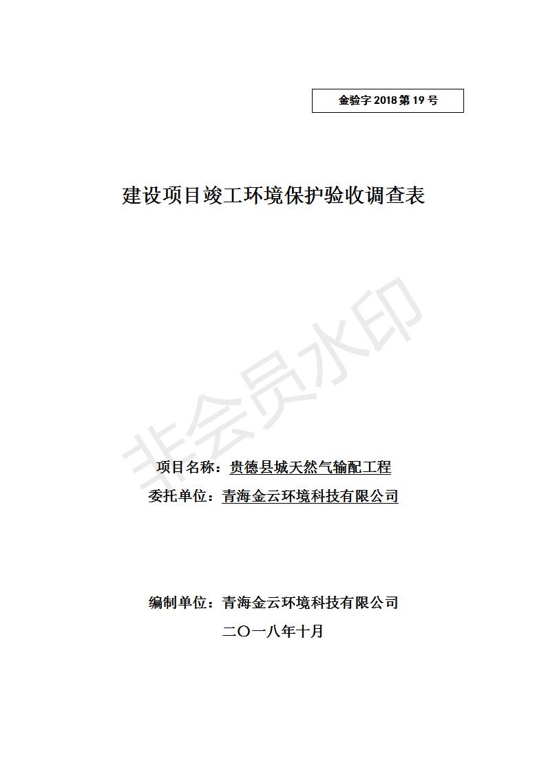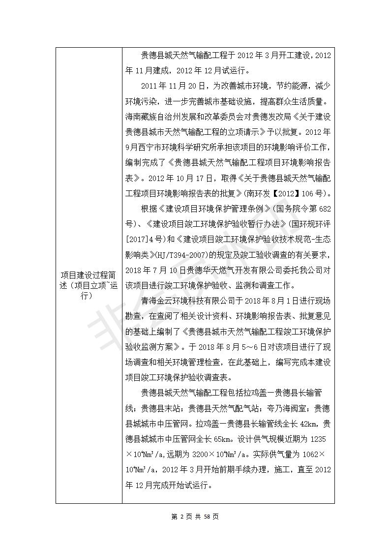 貴德縣城輸配管線(xiàn)工程竣工環(huán)境保護(hù)驗(yàn)收調(diào)查表公示