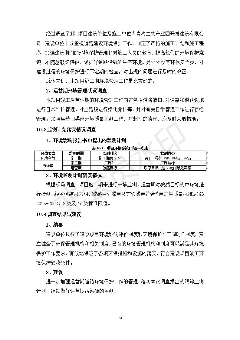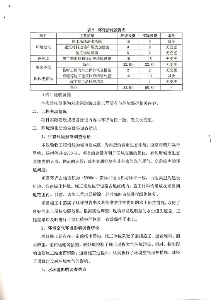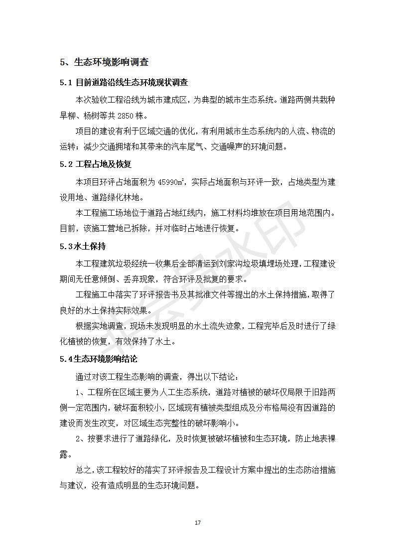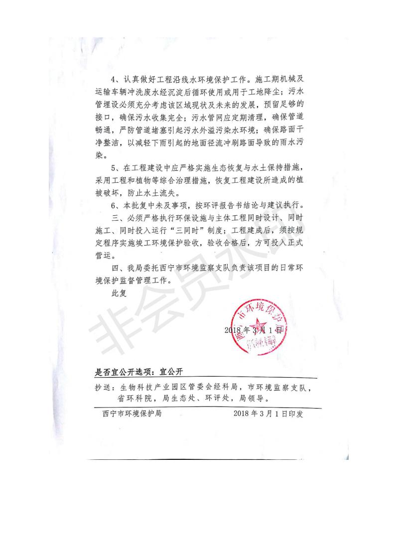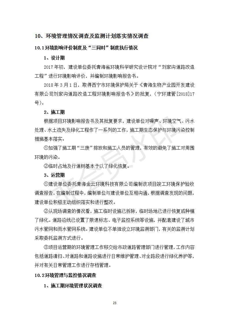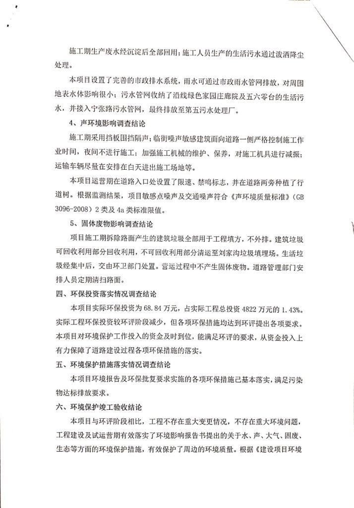 根據(jù)中華人民共和國務院令第682號《國務院關于修改〈建設項目環(huán)境保護管理條例〉的決定》和《建設項目竣工環(huán)境保護驗收暫行辦法》(國務院令682號),劉家溝道路改造工程竣工環(huán)境保護驗收內容(包括竣工環(huán)境保護驗收調查報告和驗收意見)公示如下: 一、項目名稱:劉家溝道路改造工程 二、地點:青海省西寧市城北區(qū)生物園區(qū) 三、建設單位:生物產業(yè)園開發(fā)建設有限公司 四、建設內容:劉家溝道路經改造后全長1533m,道路呈東西向展布,道路紅線為30m。設計時速為40km/h,雙向4車道。 五、公示時間:二〇一九年三月十四日至二〇一九年四月十一日 六、聯(lián)系人:張工 公示期間,對上述公示內容如有異議,請以書面形式反饋,個人須署真實姓名,單位須加蓋公章。