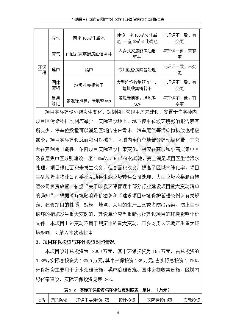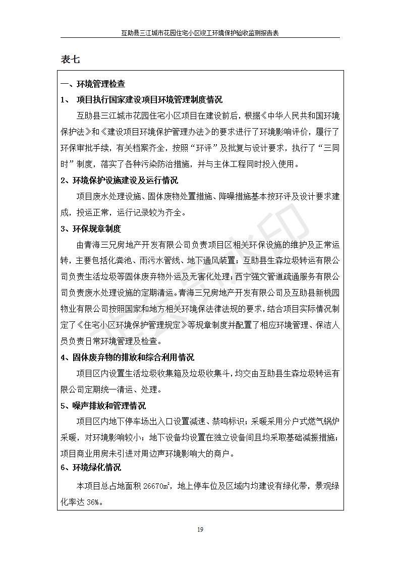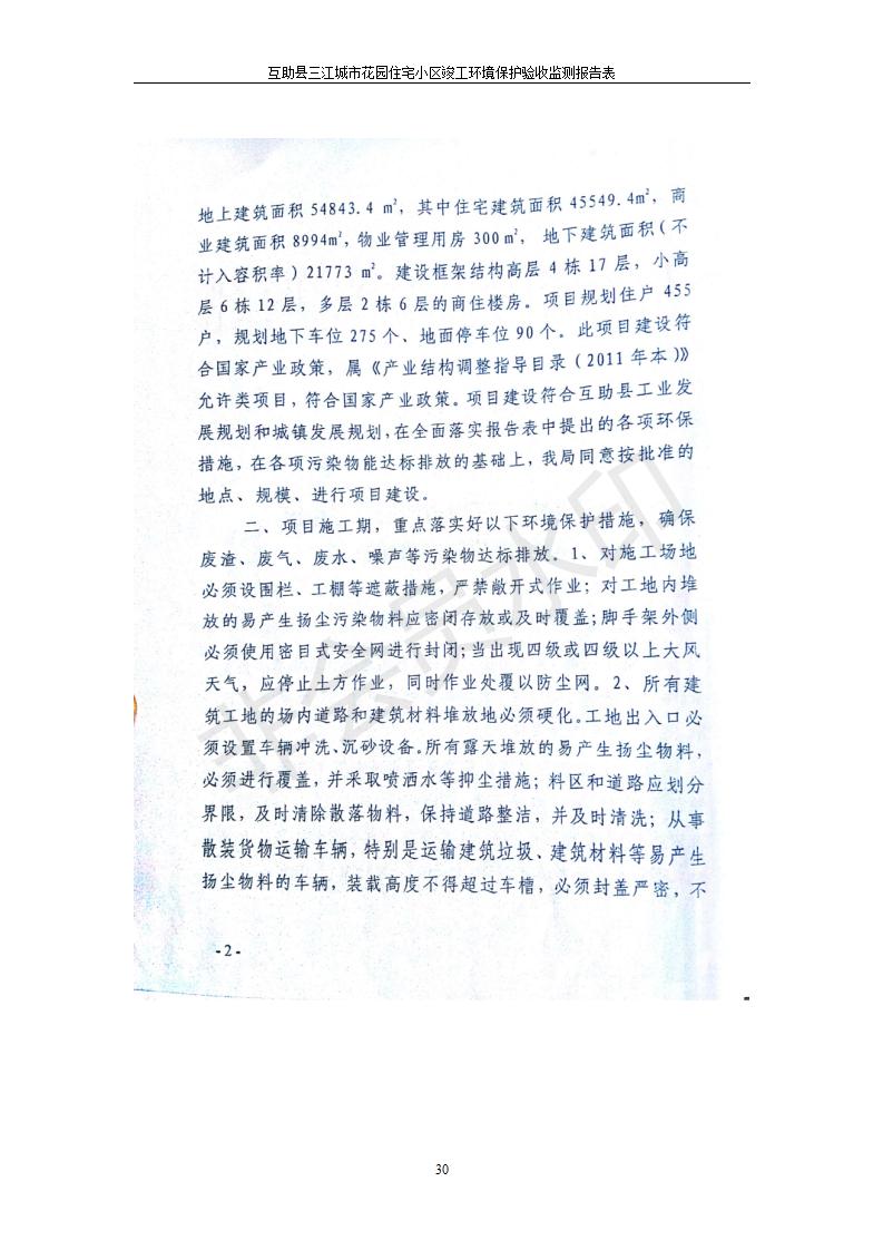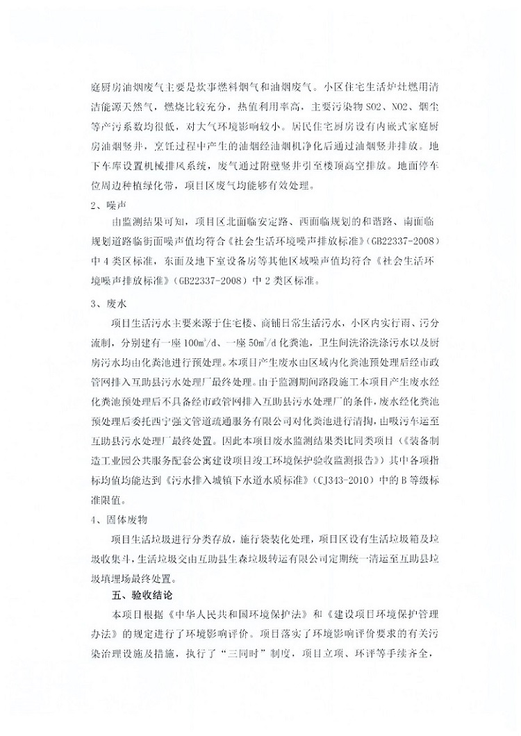根據(jù)中華人民共和國國務(wù)院令第682號(hào)《國務(wù)院關(guān)于修改〈建設(shè)項(xiàng)目環(huán)境保護(hù)管理?xiàng)l例〉的決定》和《建設(shè)項(xiàng)目竣工環(huán)境保護(hù)驗(yàn)收暫行辦法》(國務(wù)院令682號(hào)),互助縣三江城市花園住宅小區(qū)(包括竣工環(huán)境保護(hù)驗(yàn)收監(jiān)測(cè)報(bào)告表和驗(yàn)收意見)公示如下。 一、項(xiàng)目名稱: 互助縣三江城市花園住宅小區(qū)竣工環(huán)境保護(hù)驗(yàn)收監(jiān)測(cè)報(bào)告表 二、地點(diǎn):青海省海東市互助土族自治縣威遠(yuǎn)鎮(zhèn)安定路與和諧路交匯處東南角 三、建設(shè)單位:青海三兄房地產(chǎn)開發(fā)有限公司 四、建設(shè)內(nèi)容:項(xiàng)目規(guī)劃用地面積26670.0m2,實(shí)際占地面積26670.0m2,項(xiàng)目占地面積未發(fā)生變化,規(guī)劃設(shè)計(jì)建筑總面積76616.4m2,其中商業(yè)建筑面積8994m2。實(shí)際建筑總面積58639.64m2,其中商業(yè)建筑面積9894.27m2。 五、聯(lián)系人:張工 六、聯(lián)系電 話:0971-6515411 七、公示時(shí)間:二〇一九年六月五日至二〇一九年七月三日 公示期間,對(duì)上述公示內(nèi)容如有異議,請(qǐng)以書面形式反饋,個(gè)人須署真實(shí)姓名,單位須加蓋公章。