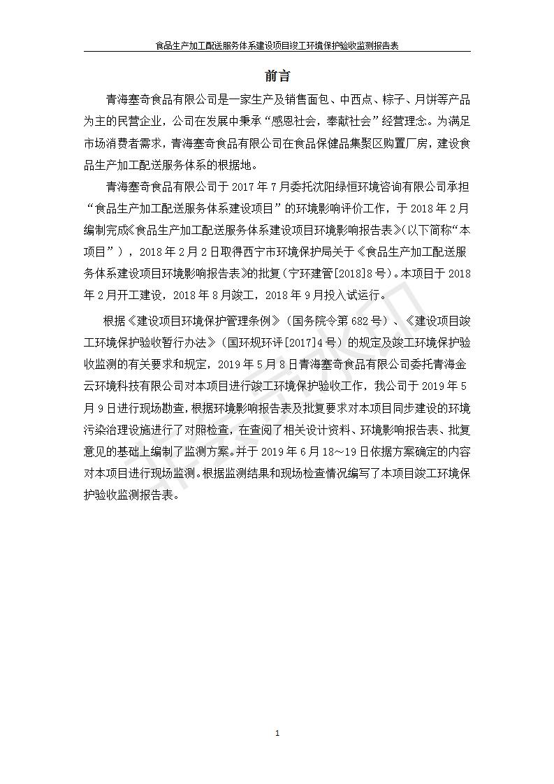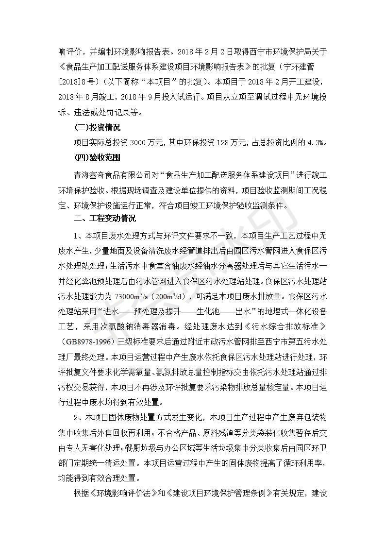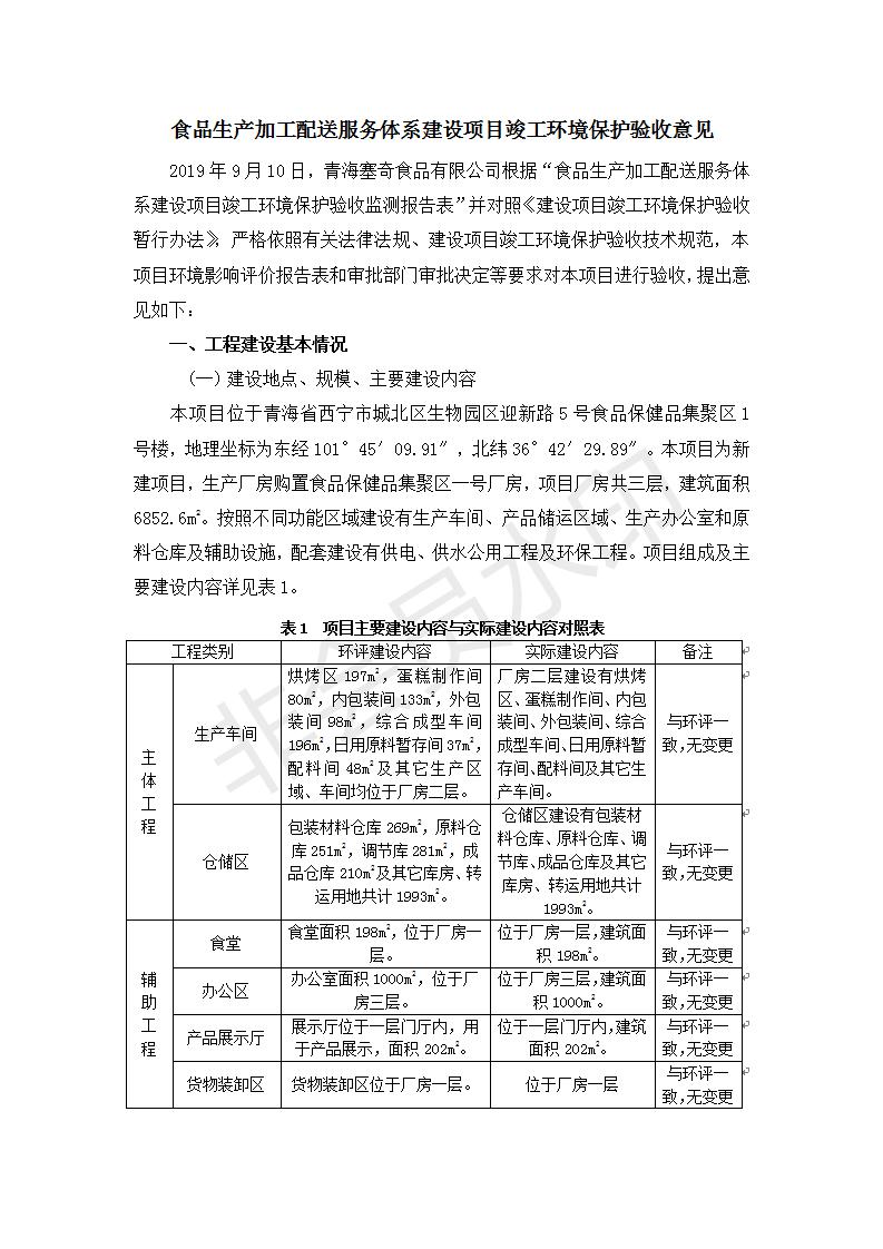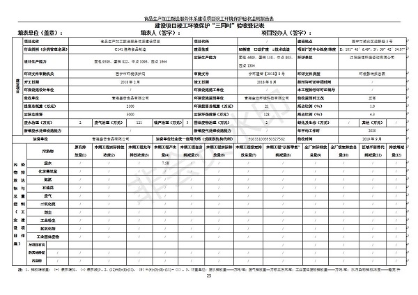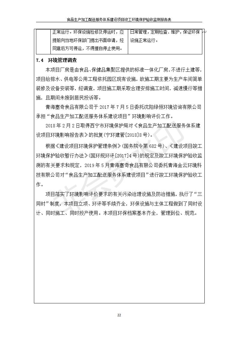 根據(jù)中華人民共和國(guó)國(guó)務(wù)院令第682號(hào)《國(guó)務(wù)院關(guān)于修改〈建設(shè)項(xiàng)目環(huán)境保護(hù)管理?xiàng)l例〉的決定》和《建設(shè)項(xiàng)目竣工環(huán)境保護(hù)驗(yàn)收暫行辦法》(國(guó)務(wù)院令682號(hào)),食品生產(chǎn)加工配送服務(wù)體系建設(shè)項(xiàng)目(包括竣工環(huán)境保護(hù)驗(yàn)收監(jiān)測(cè)報(bào)告表和驗(yàn)收意見(jiàn))公示如下。 一、項(xiàng)目名稱(chēng):食品生產(chǎn)加工配送服務(wù)體系建設(shè)項(xiàng)目 二、地點(diǎn):西寧市城北區(qū)生物園區(qū)迎新路5號(hào)食品保健品集聚區(qū)1號(hào)樓 六、聯(lián)系電 話(huà):0971-6515411 七、公示時(shí)間:二〇一九年九月二十日至二〇一九年十月二十二日 公示期間,對(duì)上述公示內(nèi)容如有異議,請(qǐng)以書(shū)面形式反饋,個(gè)人須署真實(shí)姓名,單位須加蓋公章。
