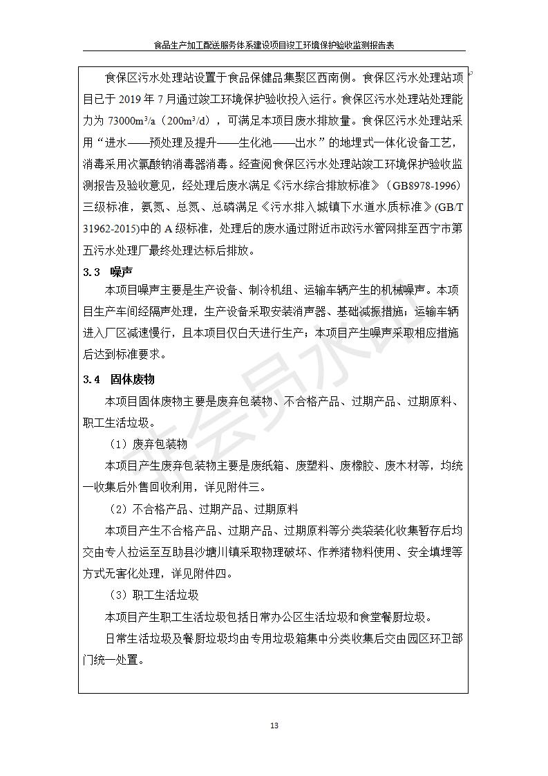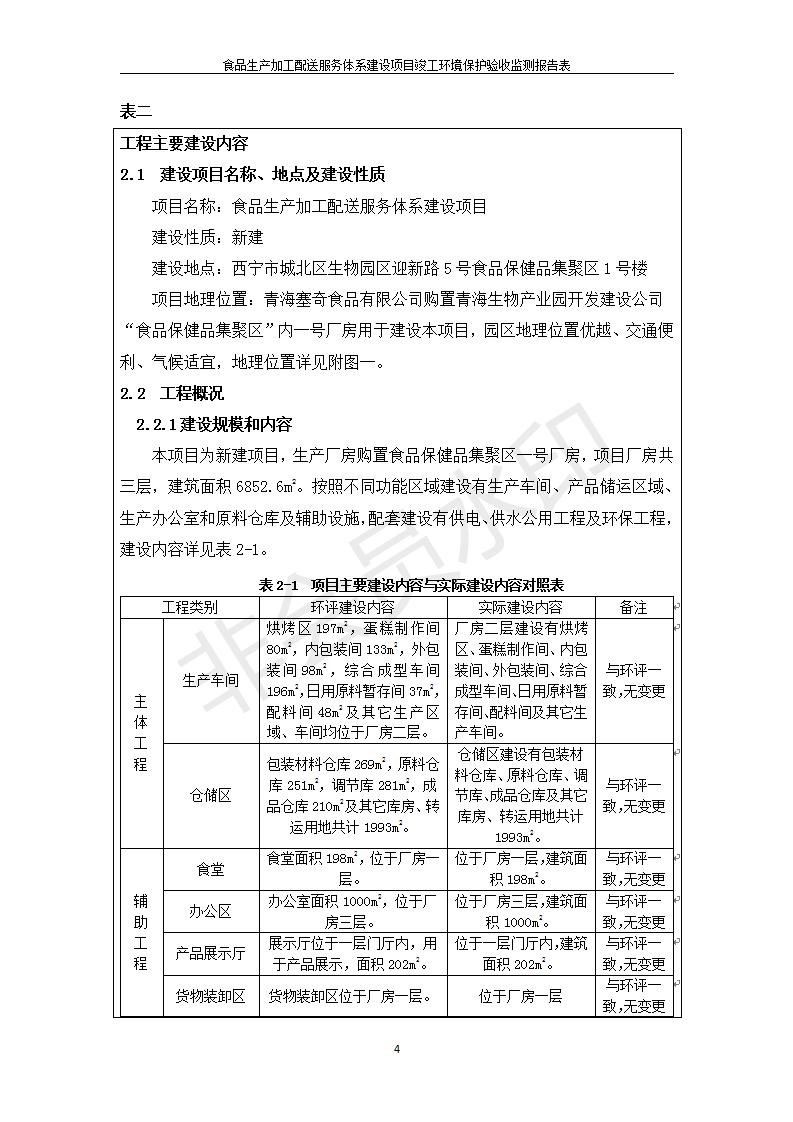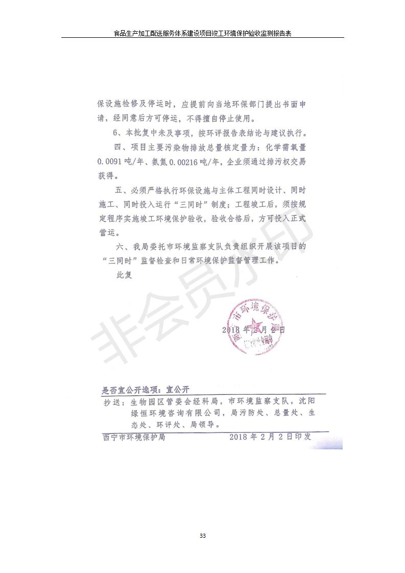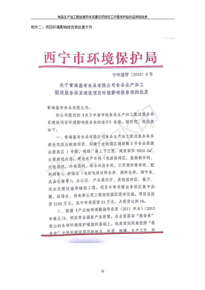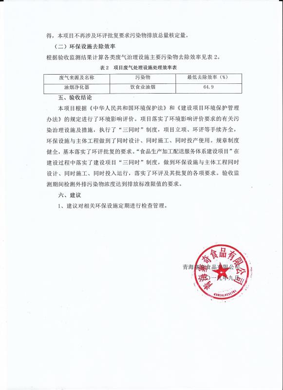 根據(jù)中華人民共和國(guó)國(guó)務(wù)院令第682號(hào)《國(guó)務(wù)院關(guān)于修改〈建設(shè)項(xiàng)目環(huán)境保護(hù)管理?xiàng)l例〉的決定》和《建設(shè)項(xiàng)目竣工環(huán)境保護(hù)驗(yàn)收暫行辦法》(國(guó)務(wù)院令682號(hào)),食品生產(chǎn)加工配送服務(wù)體系建設(shè)項(xiàng)目(包括竣工環(huán)境保護(hù)驗(yàn)收監(jiān)測(cè)報(bào)告表和驗(yàn)收意見(jiàn))公示如下。 一、項(xiàng)目名稱(chēng):食品生產(chǎn)加工配送服務(wù)體系建設(shè)項(xiàng)目 二、地點(diǎn):西寧市城北區(qū)生物園區(qū)迎新路5號(hào)食品保健品集聚區(qū)1號(hào)樓 六、聯(lián)系電 話(huà):0971-6515411 七、公示時(shí)間:二〇一九年九月二十日至二〇一九年十月二十二日 公示期間,對(duì)上述公示內(nèi)容如有異議,請(qǐng)以書(shū)面形式反饋,個(gè)人須署真實(shí)姓名,單位須加蓋公章。