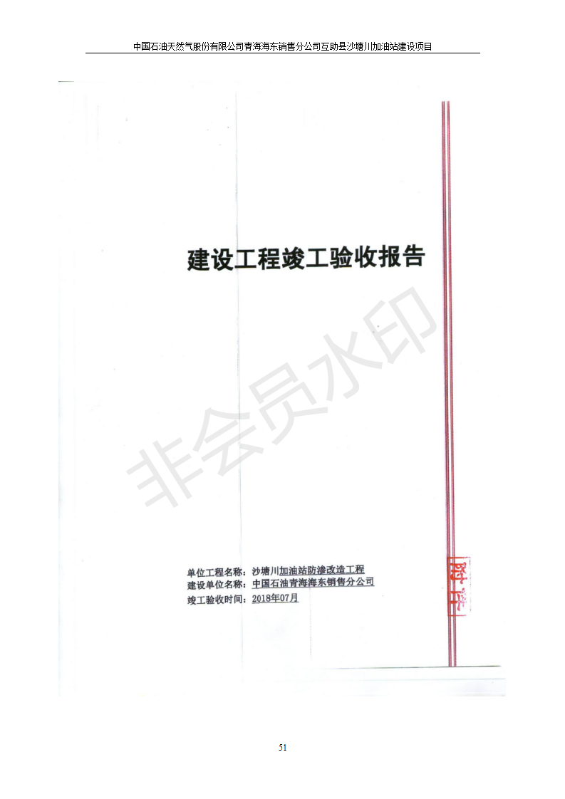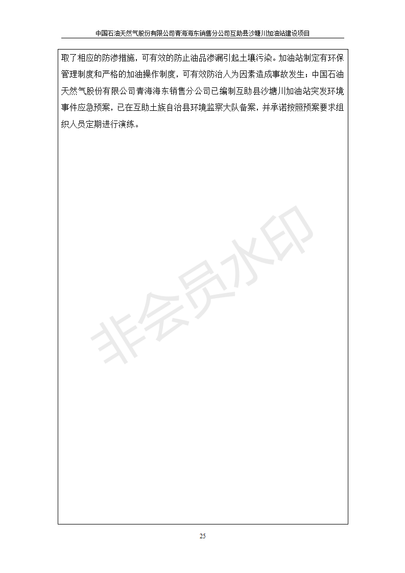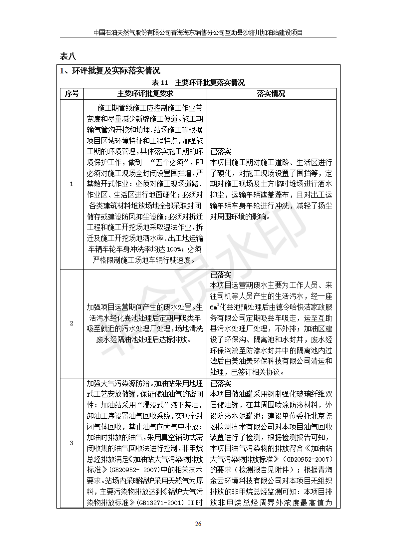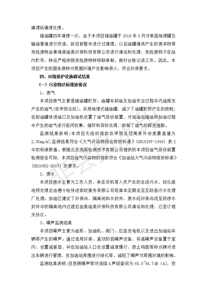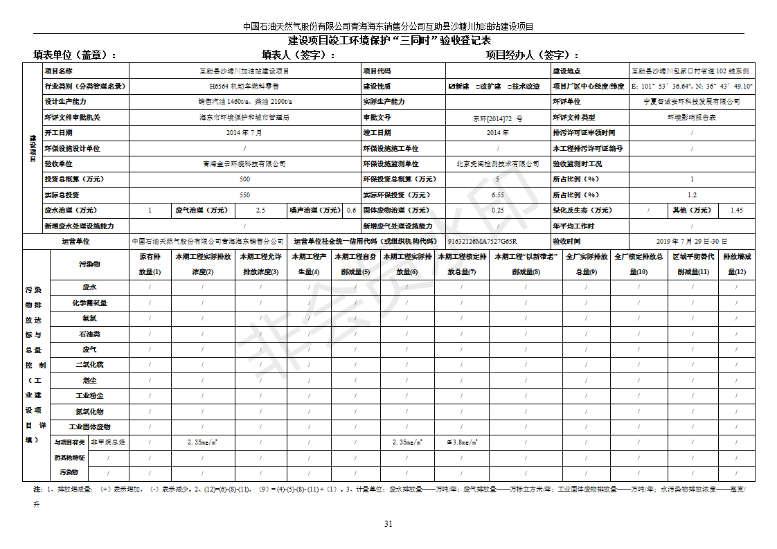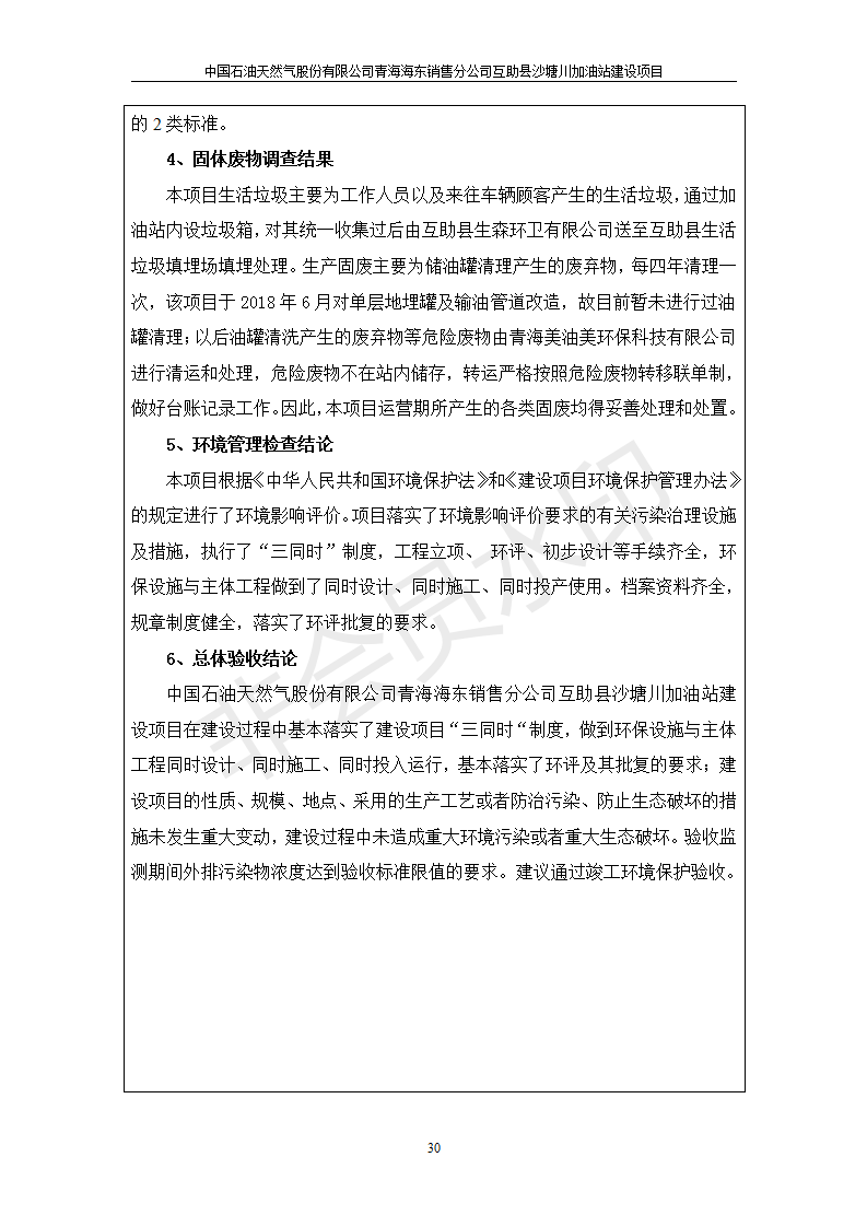根據(jù)中華人民共和國國務(wù)院令第682號《國務(wù)院關(guān)于修改〈建設(shè)項目環(huán)境保護管理條例〉的決定》和《建設(shè)項目竣工環(huán)境保護驗收暫行辦法》(國務(wù)院令682號),互助縣沙塘川加油站建設(shè)項目(包括竣工環(huán)境保護驗收監(jiān)測報告表和驗收意見)公示如下。 一、項目名稱:互助縣沙塘川加油站建設(shè)項目 二、地點:互助縣塘川鎮(zhèn)包家口村 六、聯(lián)系電話:0971-6515411 七、公示時間:二〇一九年九月二十七日至二〇一九年十月二十九日 公示期間,對上述公示內(nèi)容如有異議,請以書面形式反饋,個人須署真實姓名,單位須加蓋公章。