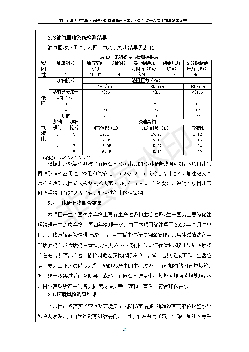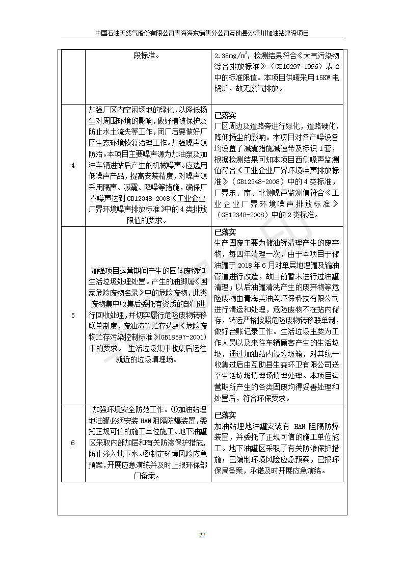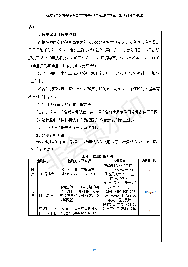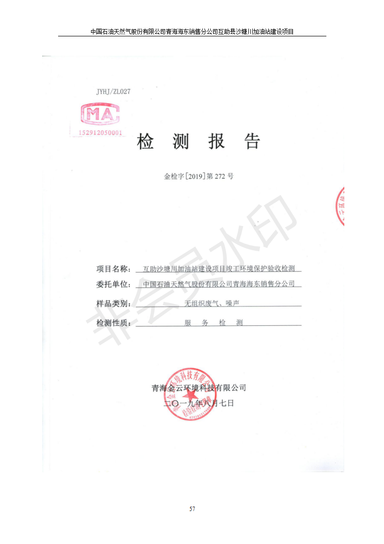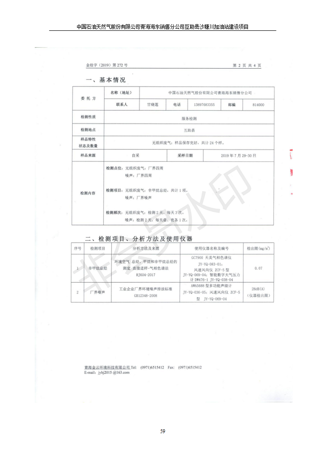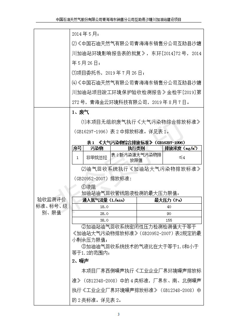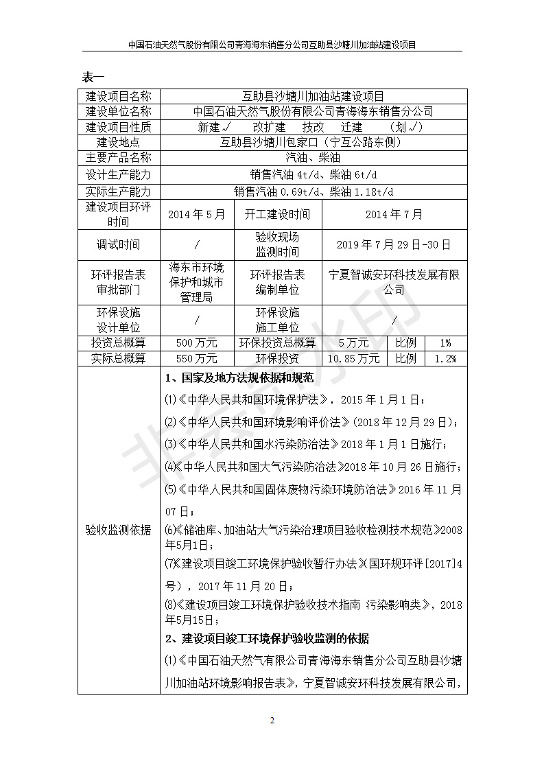 互助縣沙塘川加油站建設(shè)項目竣工環(huán)境保護驗收監(jiān)測報告表發(fā)布日期:(2019-9-27) 點擊次數(shù):2350 |