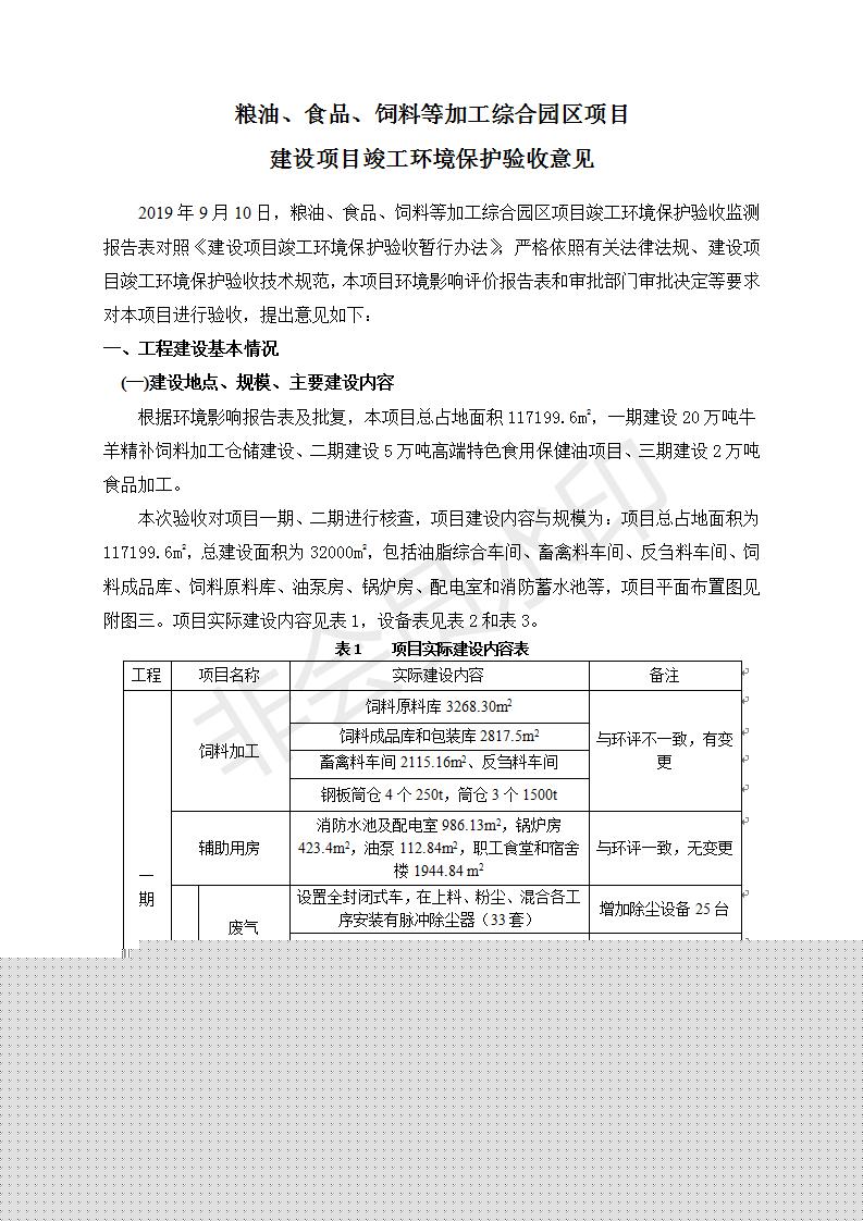 糧油、食品、飼料等加工綜合園區(qū)項(xiàng)目竣工環(huán)境保護(hù)驗(yàn)收監(jiān)測(cè)報(bào)告表公示發(fā)布日期:(2019-10-9) 點(diǎn)擊次數(shù):2773 |
