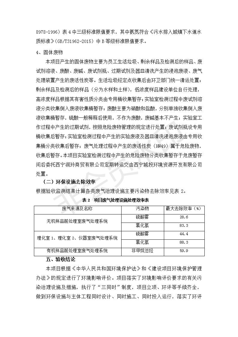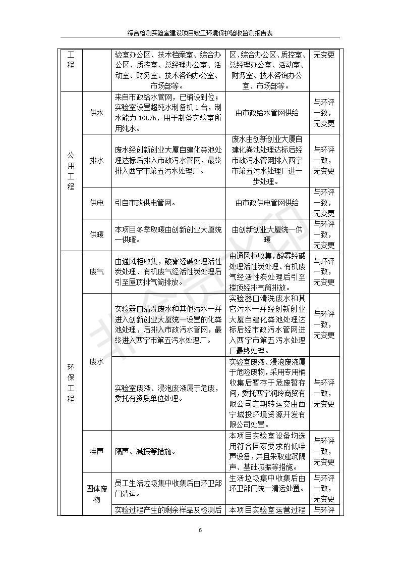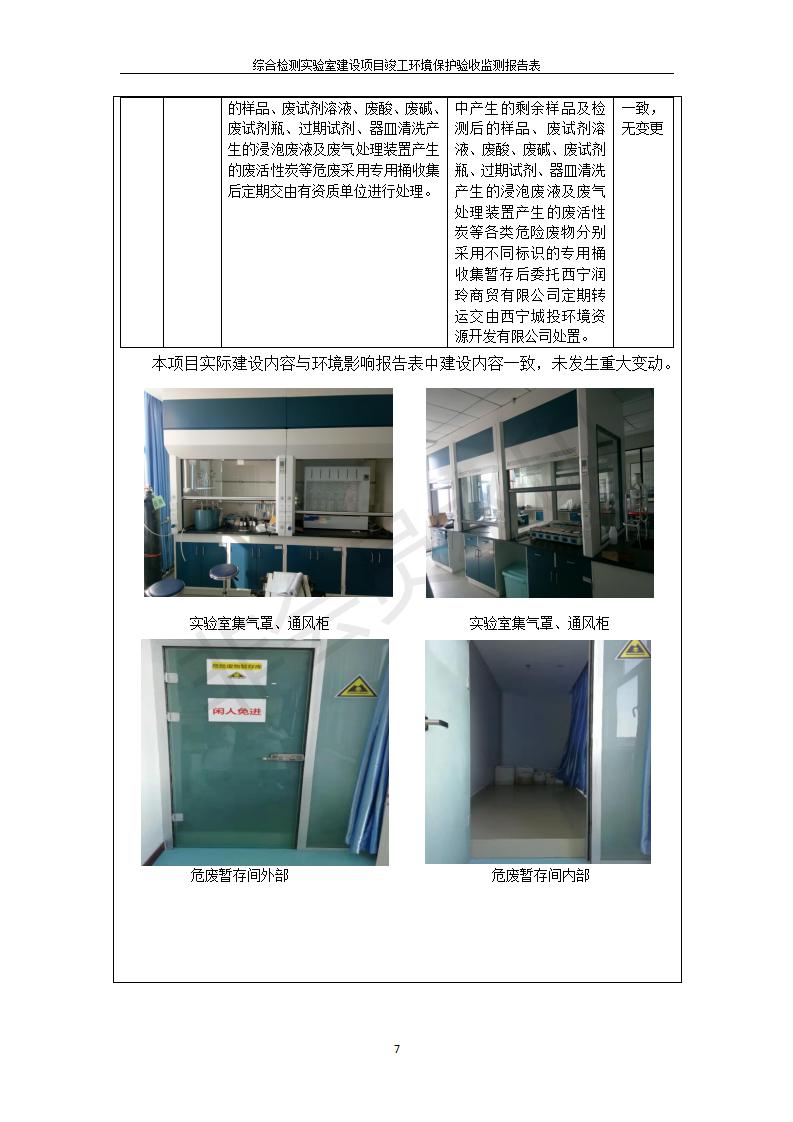 根據(jù)中華人民共和國國務(wù)院令第682號《國務(wù)院關(guān)于修改〈建設(shè)項目環(huán)境保護管理條例〉的決定》和《建設(shè)項目竣工環(huán)境保護驗收暫行辦法》(國務(wù)院令682號),綜合檢測實驗室建設(shè)項目(包括竣工環(huán)境保護驗收監(jiān)測報告表和驗收意見)公示如下。 一、項目名稱:綜合檢測實驗室建設(shè)項目 二、地點:西寧市經(jīng)濟技術(shù)開發(fā)區(qū)生物科技產(chǎn)業(yè)園區(qū)創(chuàng)新創(chuàng)業(yè)大廈南區(qū)15、16層 六、聯(lián)系電話:0971-6515411 七、公示時間:二〇一九年十一月十九日至二〇一九年十二月十六日 公示期間,對上述公示內(nèi)容如有異議,請以書面形式反饋,個人須署真實姓名,單位須加蓋公章。