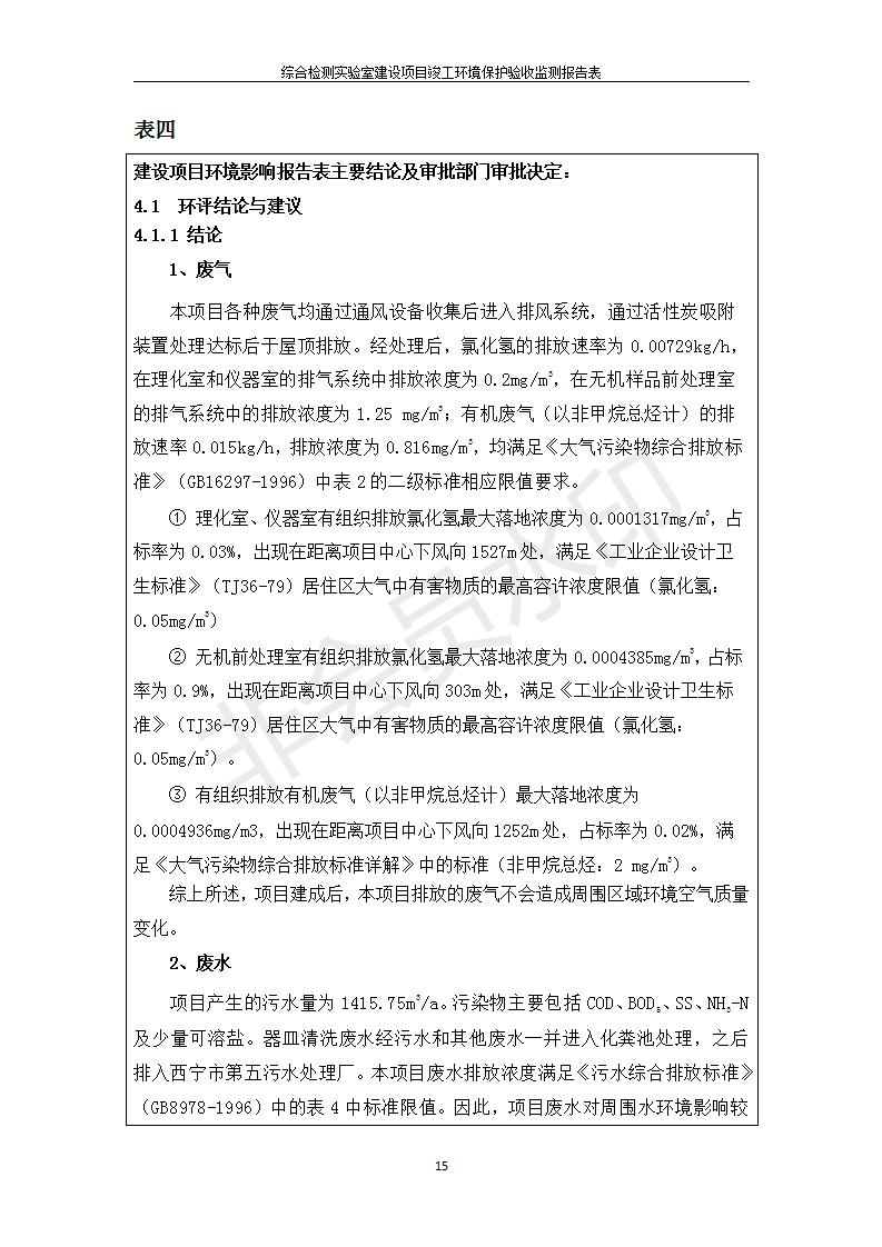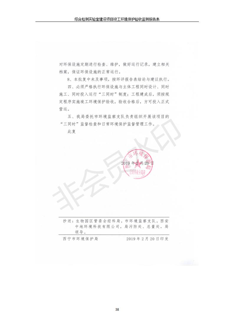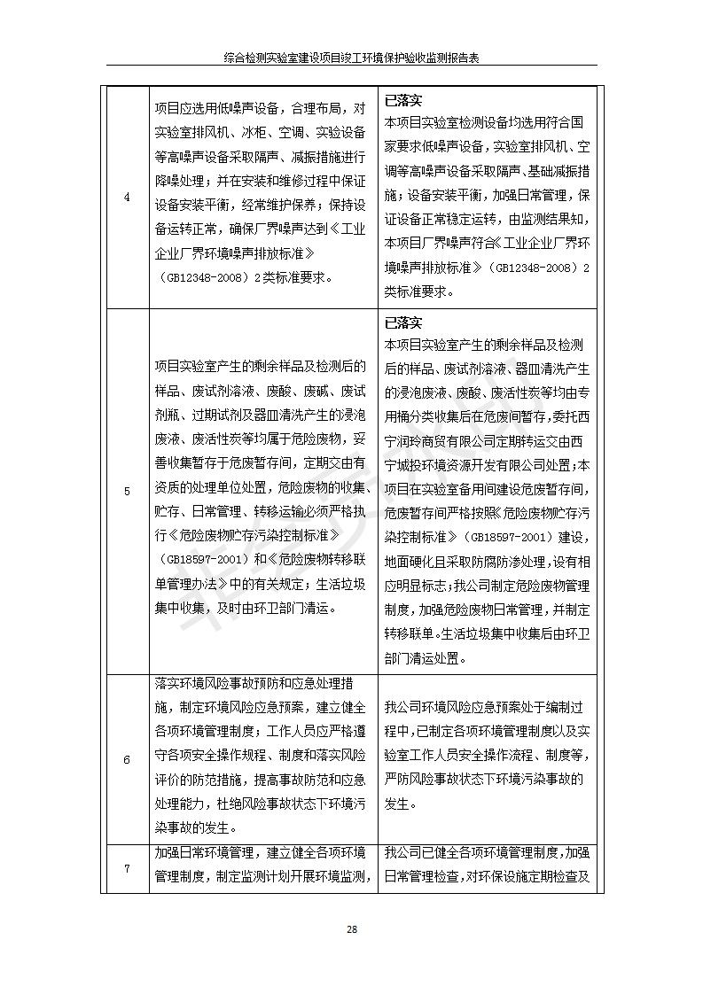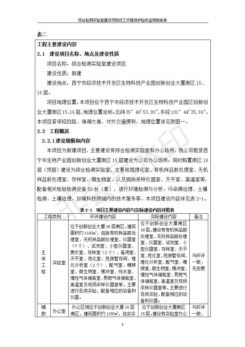 根據(jù)中華人民共和國國務(wù)院令第682號《國務(wù)院關(guān)于修改〈建設(shè)項目環(huán)境保護管理條例〉的決定》和《建設(shè)項目竣工環(huán)境保護驗收暫行辦法》(國務(wù)院令682號),綜合檢測實驗室建設(shè)項目(包括竣工環(huán)境保護驗收監(jiān)測報告表和驗收意見)公示如下。 一、項目名稱:綜合檢測實驗室建設(shè)項目 二、地點:西寧市經(jīng)濟技術(shù)開發(fā)區(qū)生物科技產(chǎn)業(yè)園區(qū)創(chuàng)新創(chuàng)業(yè)大廈南區(qū)15、16層 六、聯(lián)系電話:0971-6515411 七、公示時間:二〇一九年十一月十九日至二〇一九年十二月十六日 公示期間,對上述公示內(nèi)容如有異議,請以書面形式反饋,個人須署真實姓名,單位須加蓋公章。