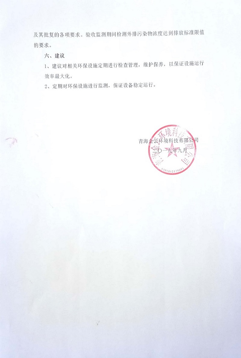 | 上一篇:年產(chǎn)40萬條集裝袋及500萬條編織袋生產(chǎn)線項目竣工環(huán)境保護驗收監(jiān)測報告表公示 | 下一篇:青海義盛選煤有限公司熱水選煤項目(階段性)竣工環(huán)境保護驗收 |