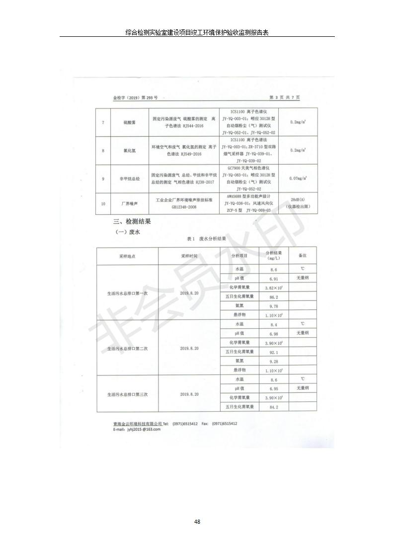 綜合檢測實驗室建設(shè)項目竣工環(huán)境保護驗收監(jiān)測報告表公示發(fā)布日期:(2019-11-19) 點擊次數(shù):3135 |