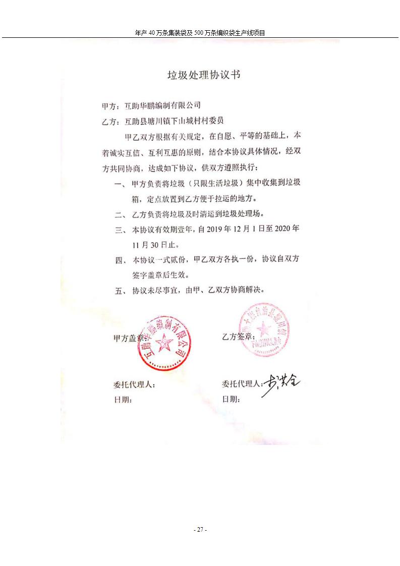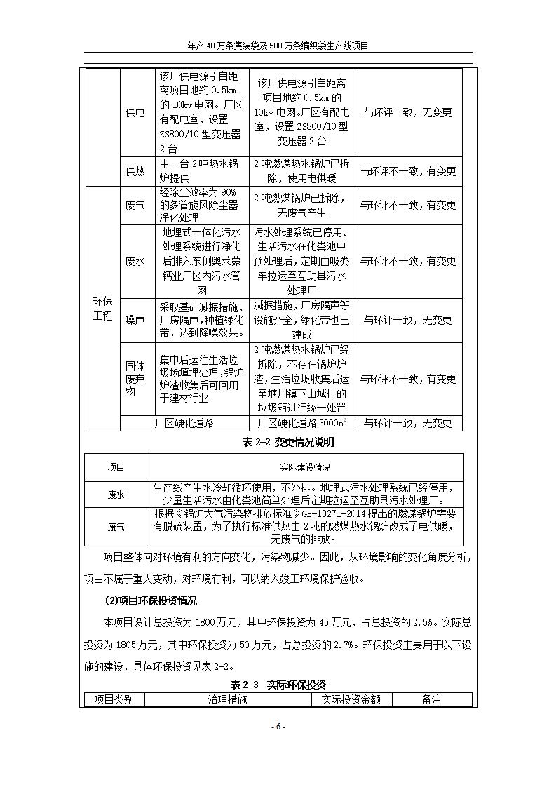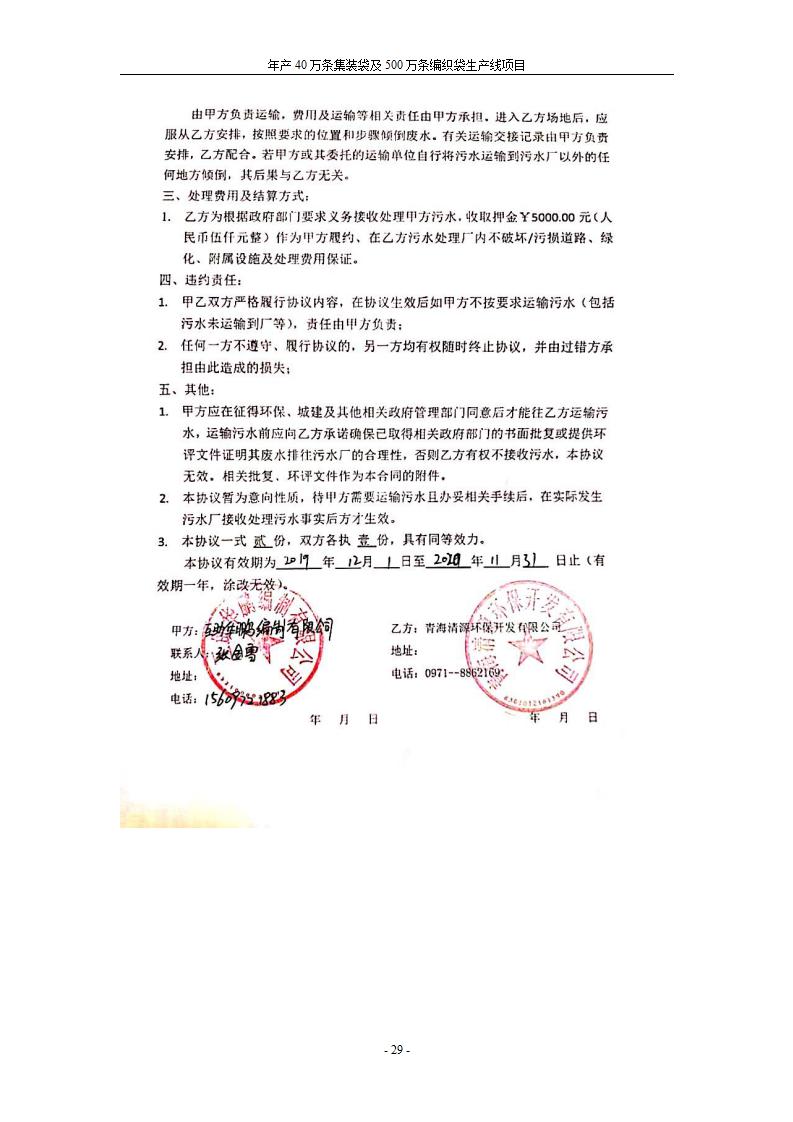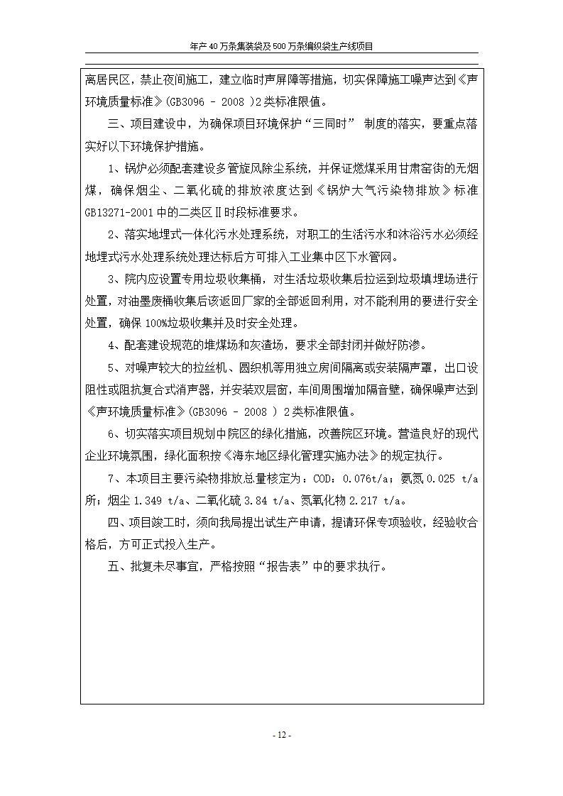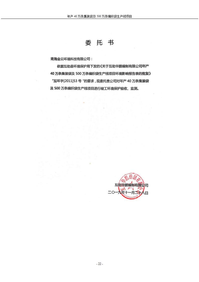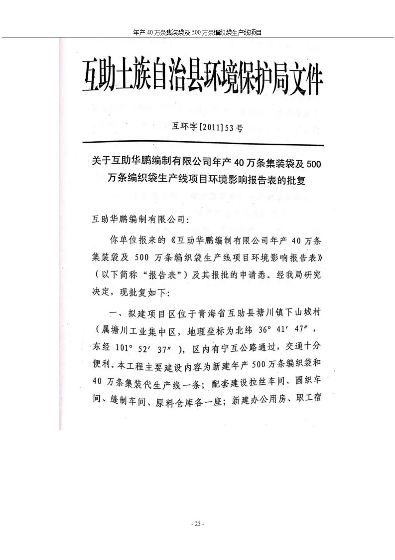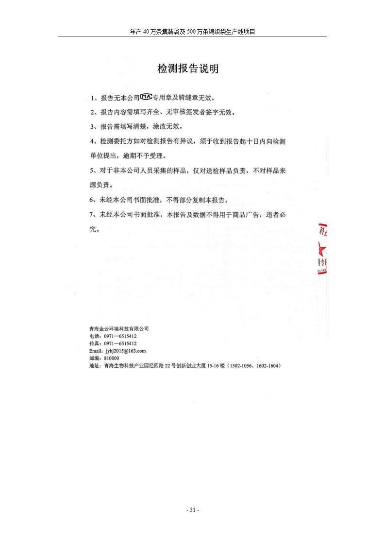 根據(jù)中華人民共和國國務(wù)院令第682號《國務(wù)院關(guān)于修改〈建設(shè)項(xiàng)目環(huán)境保護(hù)管理?xiàng)l例〉的決定》和《建設(shè)項(xiàng)目竣工環(huán)境保護(hù)驗(yàn)收暫行辦法》(國務(wù)院令682號),年產(chǎn)40萬條集裝袋及500萬條編織袋生產(chǎn)線項(xiàng)目(包括竣工環(huán)境保護(hù)驗(yàn)收調(diào)查表和驗(yàn)收意見)公示如下。 一、項(xiàng)目名稱: 年產(chǎn)40萬條集裝袋及500萬條編織袋生產(chǎn)線項(xiàng)目 二、地點(diǎn):互助縣塘川鎮(zhèn)下山城村 五、聯(lián)系人:張工 六、聯(lián)系電話:0971-6515411 七、公示時(shí)間:二〇二〇年一月十三日至二〇二〇年二月十二日 公示期間,對上述公示內(nèi)容如有異議,請以書面形式反饋,個(gè)人須署真實(shí)姓名,單位須加蓋公章。