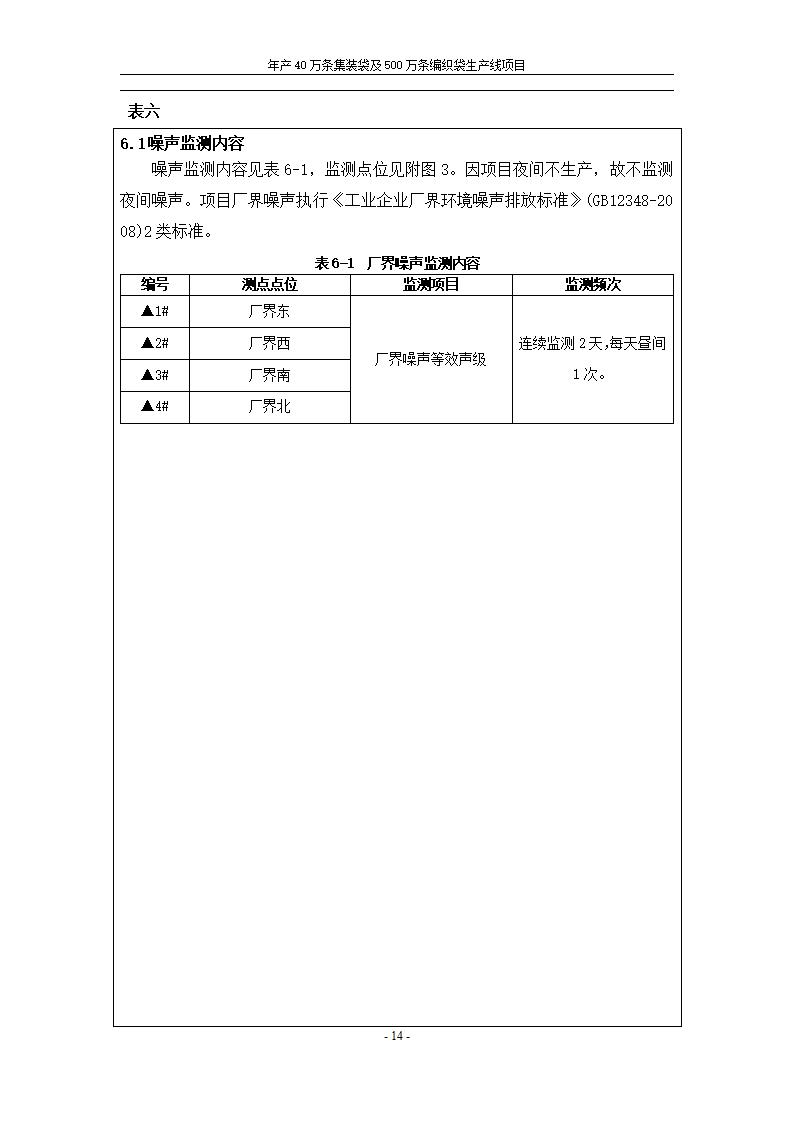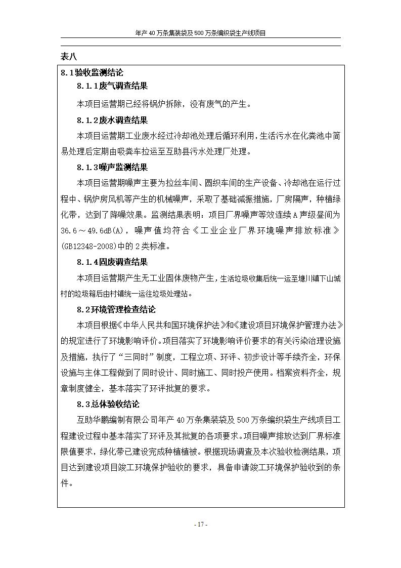 年產(chǎn)40萬條集裝袋及500萬條編織袋生產(chǎn)線項(xiàng)目竣工環(huán)境保護(hù)驗(yàn)收監(jiān)測報(bào)告表公示發(fā)布日期:(2020-1-13) 點(diǎn)擊次數(shù):2695 |