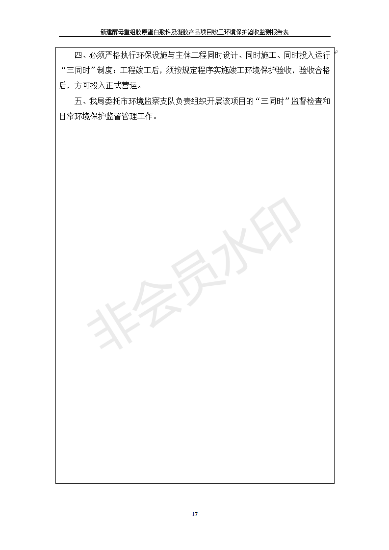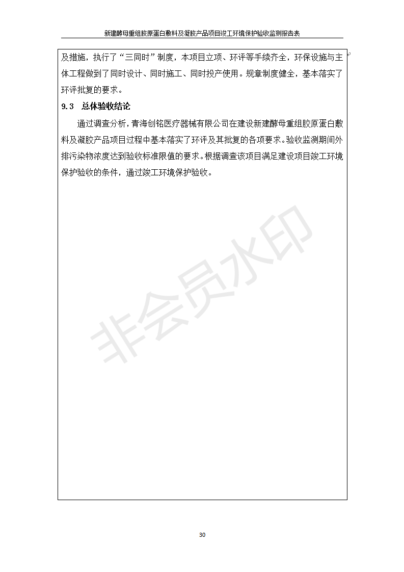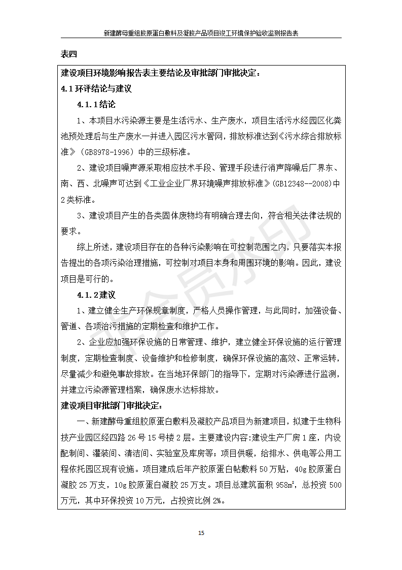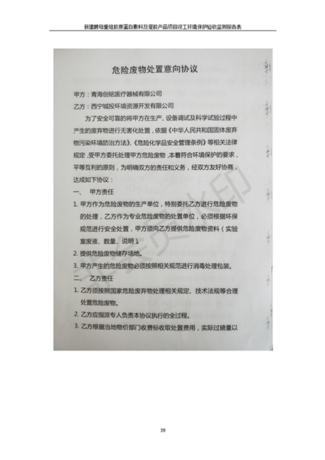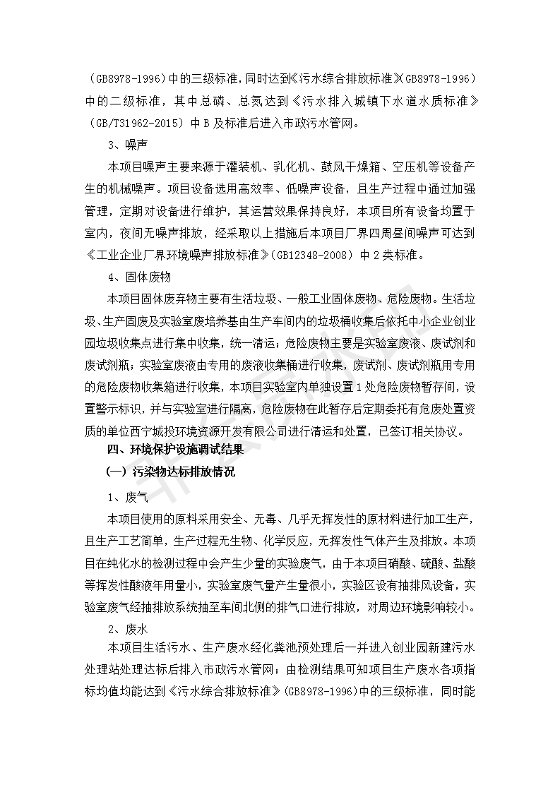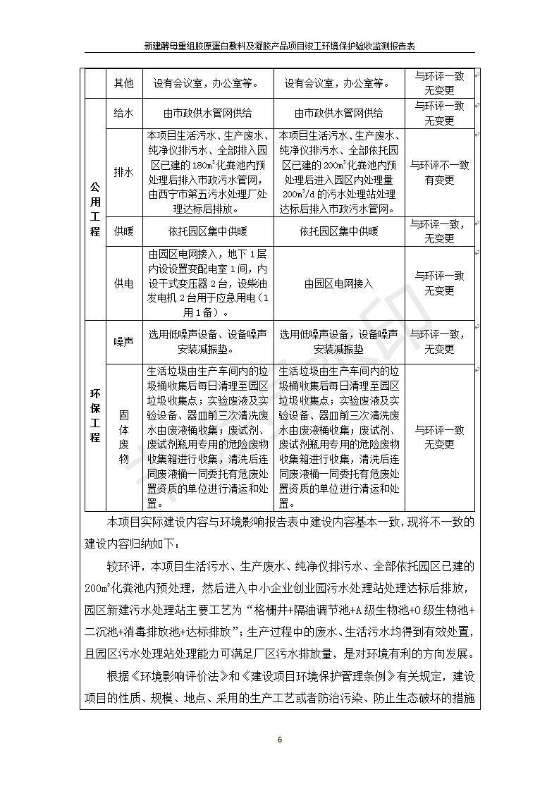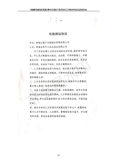 根據(jù)中華人民共和國(guó)國(guó)務(wù)院令第682號(hào)《國(guó)務(wù)院關(guān)于修改〈建設(shè)項(xiàng)目環(huán)境保護(hù)管理?xiàng)l例〉的決定》和《建設(shè)項(xiàng)目竣工環(huán)境保護(hù)驗(yàn)收暫行辦法》(國(guó)務(wù)院令682號(hào)),新建酵母重組膠原蛋白敷料及凝膠產(chǎn)品項(xiàng)目(包括竣工環(huán)境保護(hù)驗(yàn)收監(jiān)測(cè)報(bào)告表和驗(yàn)收意見(jiàn))公示如下。 一、項(xiàng)目名稱(chēng):新建酵母重組膠原蛋白敷料及凝膠產(chǎn)品項(xiàng)目 二、地點(diǎn):西寧市生物園區(qū)經(jīng)四路26號(hào)15號(hào)樓2層 五、聯(lián)系人:董繼風(fēng) 六、聯(lián)系電話:18606125050 七、公示時(shí)間:二〇二〇年一月十三日至二〇二〇年二月十二日 公示期間,對(duì)上述公示內(nèi)容如有異議,請(qǐng)以書(shū)面形式反饋,個(gè)人須署真實(shí)姓名,單位須加蓋公章。